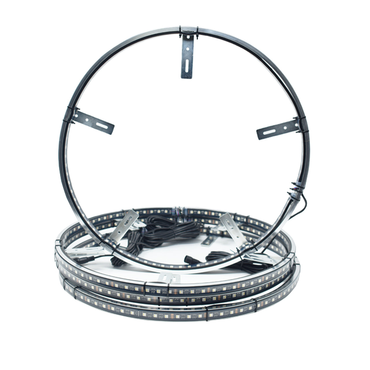 - Four 17" Universal fit rings with preinstalled double sided WhiteĀ led strip lights.
