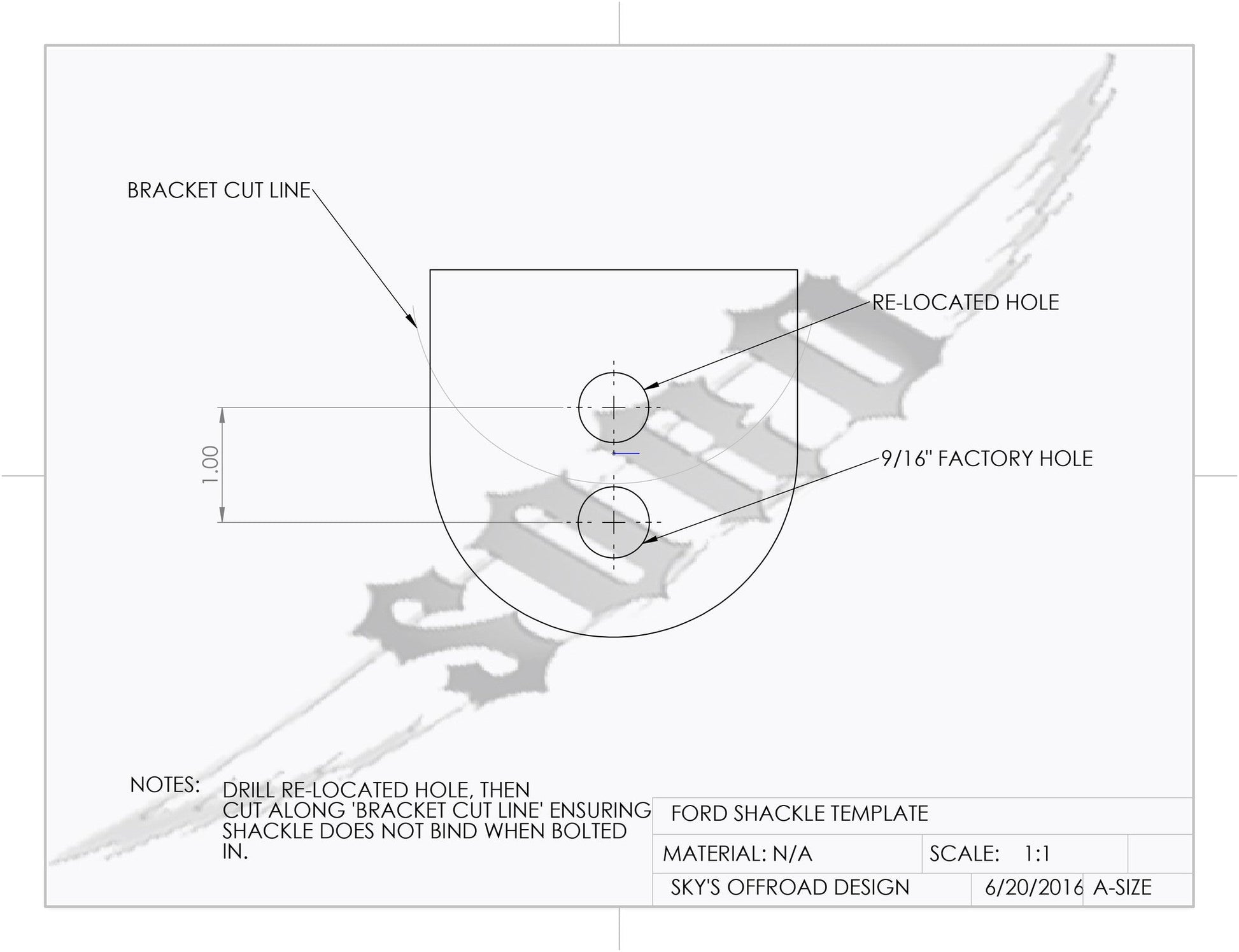 Spring length differences (due to re-arching for lift) may require installing the hanger with one bolt to confirm shackle angle before final drilling.